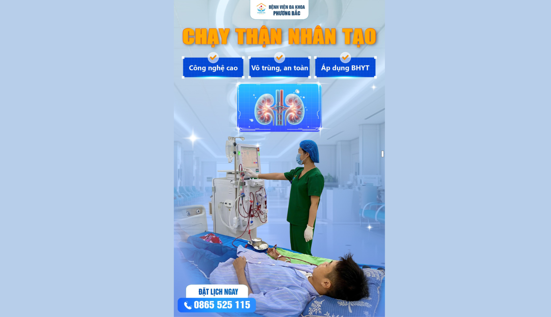 Nếu bạn hoặc người thân đang cần tư vấn và điều trị chạy thận nhân tạo, hãy lựa chọn Bệnh viện đa khoa Phương Bắc để được chăm sóc bằng chất lượng dịch vụ tốt nhất, chi phí hợp lý nhất và sự tận tâm từ trái tim người thầy thuốc.