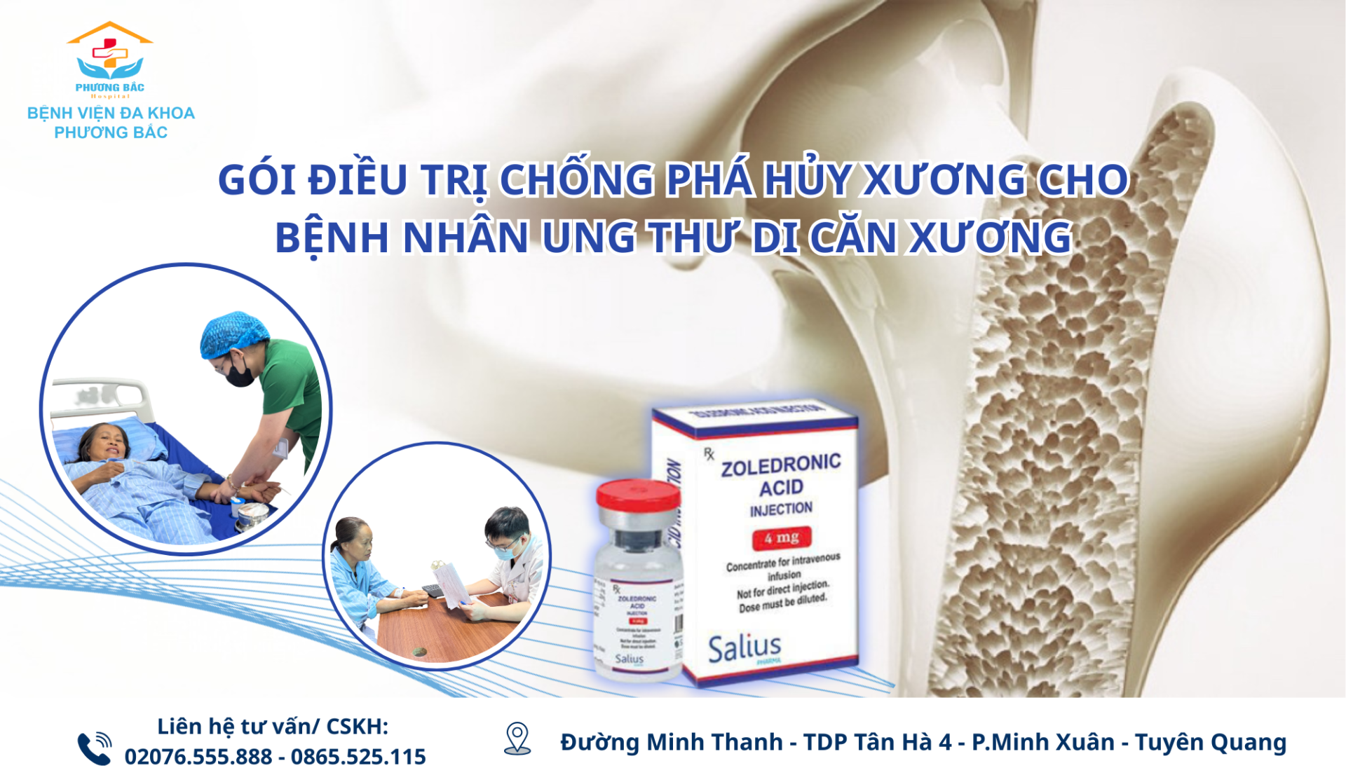 Thấu hiểu nỗi đau và mong muốn giúp bệnh nhân sống tốt hơn trong quá trình điều trị ung thư, Bệnh viện đa khoa Phương Bắc triển khai “Gói điều trị chống phá hủy xương cho bệnh nhân ung thư di căn xương” với thuốc Acid Zoledronic – một bước tiến mới trong điều trị giảm biến chứng xương.