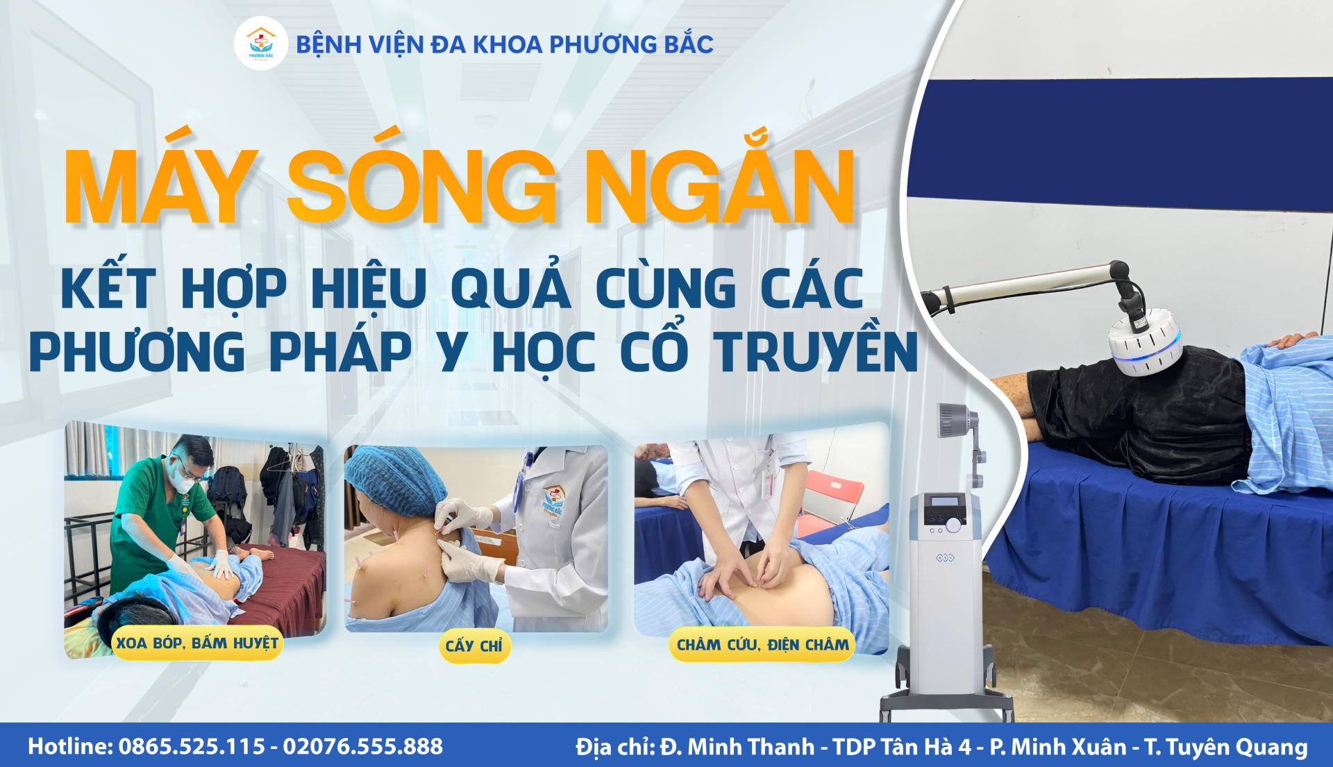 Tại Khoa Y học cổ truyền - BVĐK Phương Bắc, máy sóng ngắn được kết hợp đồng bộ với nhiều phương pháp trị liệu cổ truyền, giúp tăng hiệu quả điều trị: